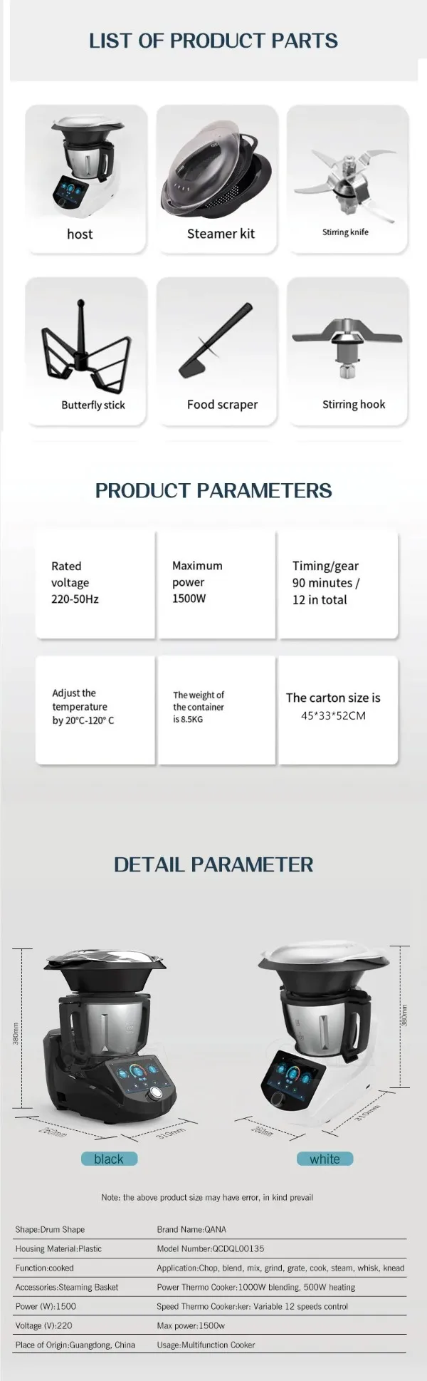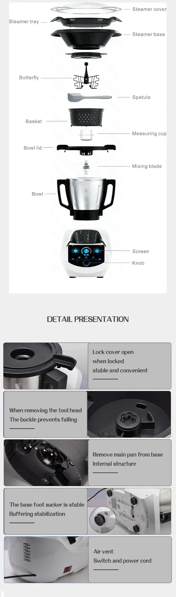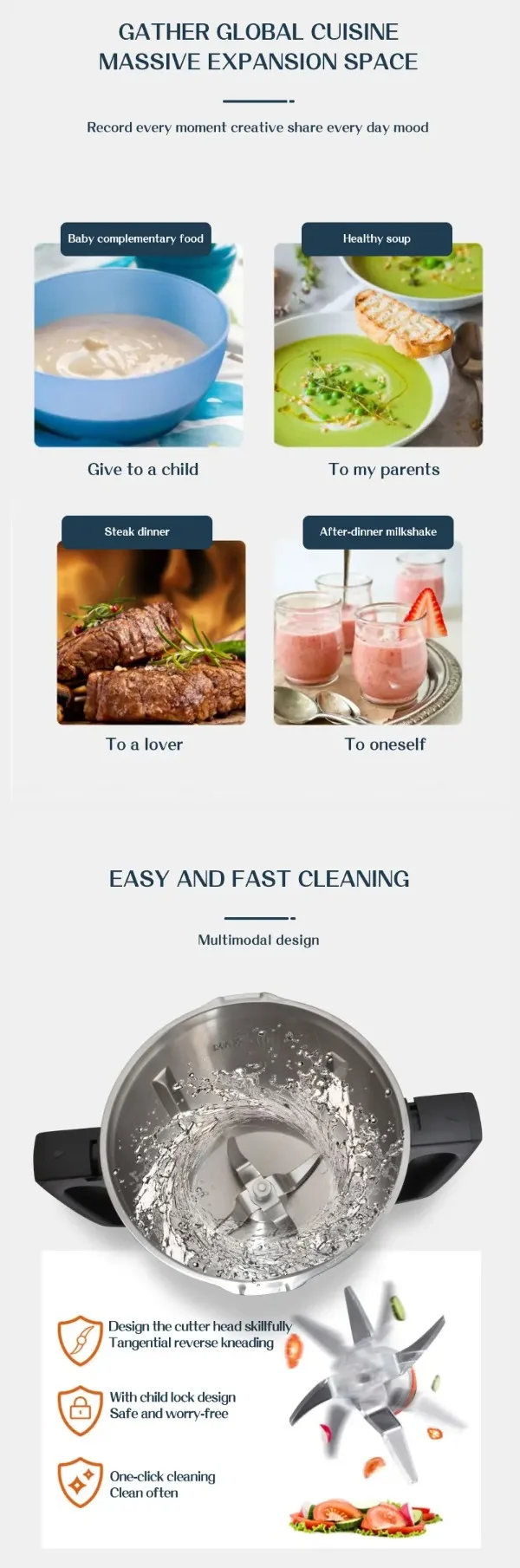 Entdecken Sie unsere multifunktionale Küchenmaschine mit einem großzügigen Fassungsvermögen von 3 Litern. Ob Zerkleinern, Mixen, Rühren oder Kochen – dieses kompakte Gerät vereint alles, was Sie für die moderne Küche benötigen! Es ist robust, leicht zu bedienen und einfach zu reinigen.